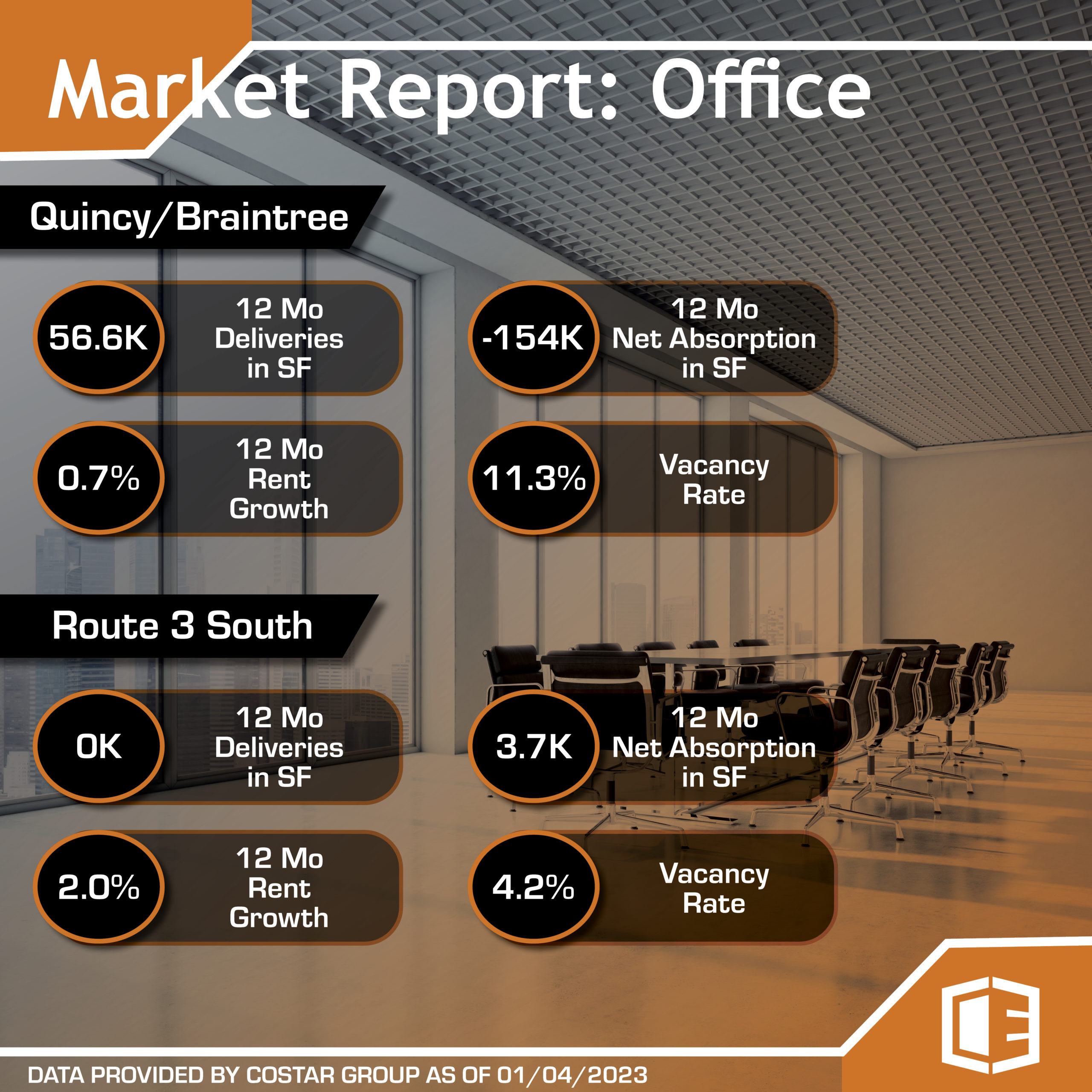 Retail properties trade with regularity in Quincy/Braintree, and that remained the case in the past year. Relative to Boston, market pricing sits at $264/SF, which is right in line with the region’s average pricing.